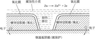 如圖所示,鍍鋅犧牲保護(hù)原理圖